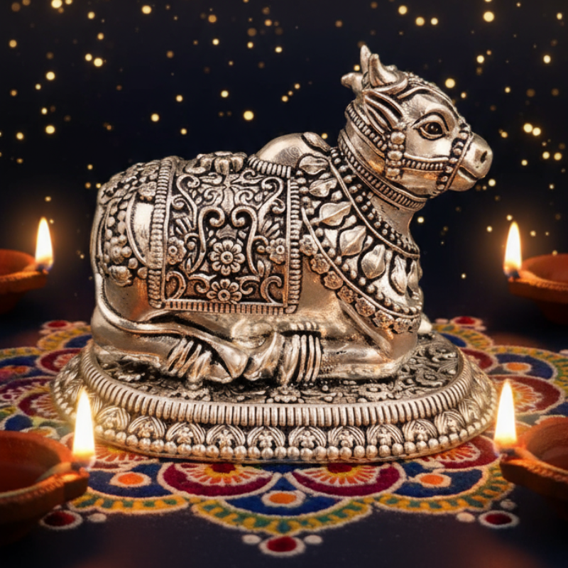 The Handcrafted Brass Nandi Ji Idol – Silver Plated Murti for Daily Puja, Temple Worship & Auspicious Gifting from Gopal Ji Silver Art represents devotion, loyalty, and divine strength.